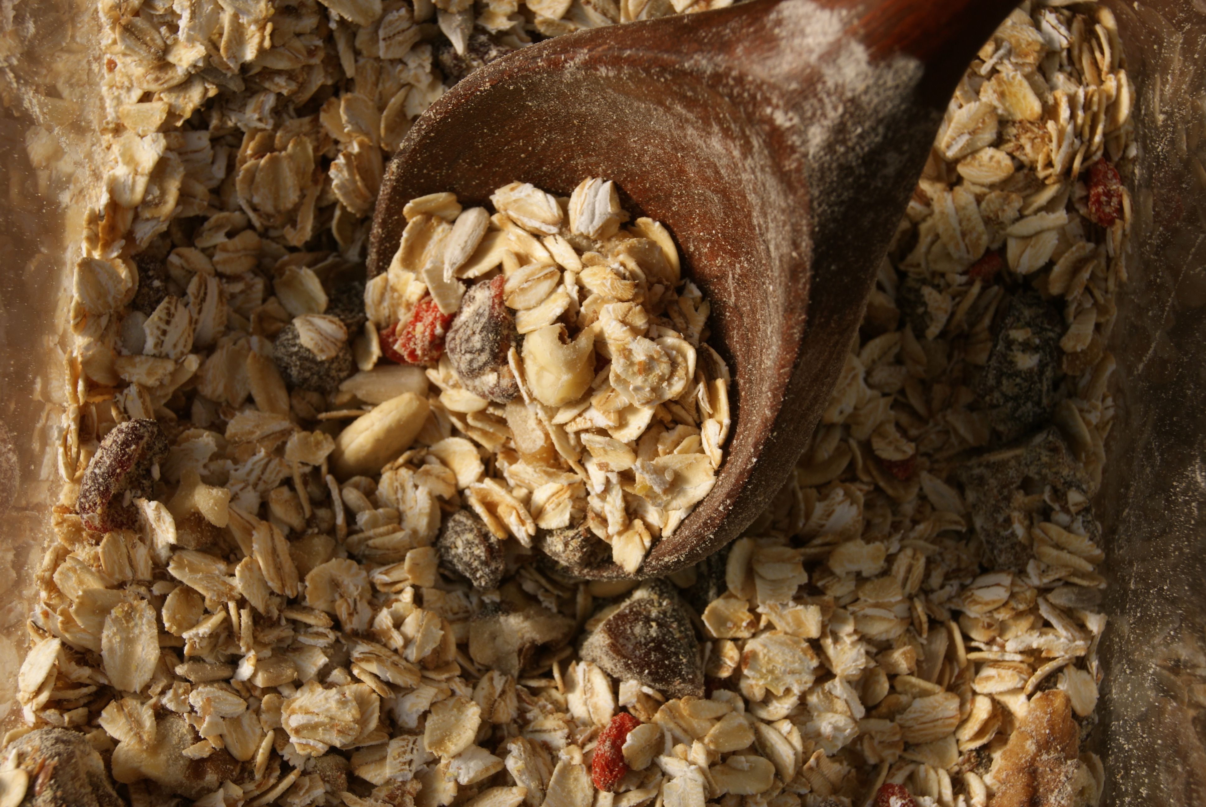 In a large bowl, combine the oats, raisins, dates, goji berries, nuts, sunflower seeds, flaxseed meal and other optional ingredients. Place in an airtight container and keep in a cool place or in the refrigerator.