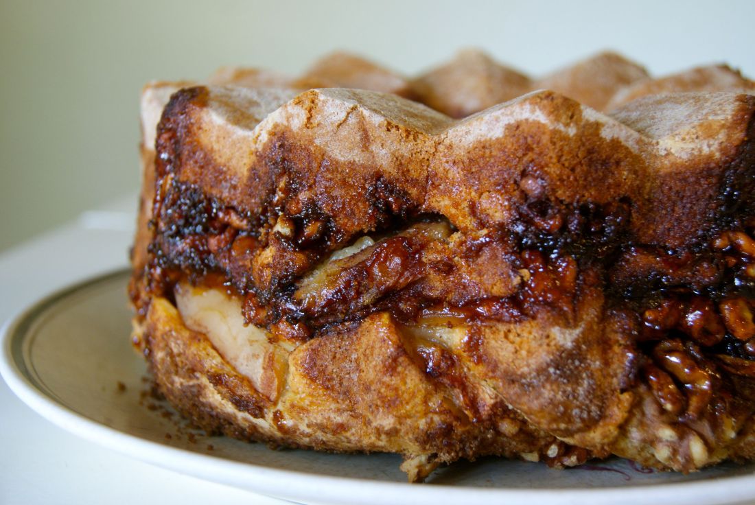 Bake 60-70 minutes or until done. Allow to cool on a wire rack for 10 minutes. Turn over onto a plate and serve warm.