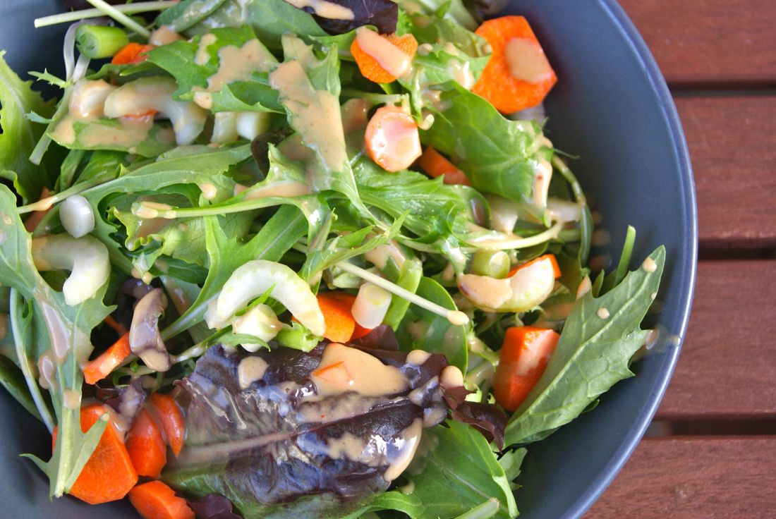 This spicy peanut vinaigrette will give your salad greens an extra kick and you might find yourself coming back for seconds and thirds on salad, which is never a bad thing! We have always enjoyed the Trader Joe’s Spicy Peanut Dressing and this dressing is very similar in taste, if not better.